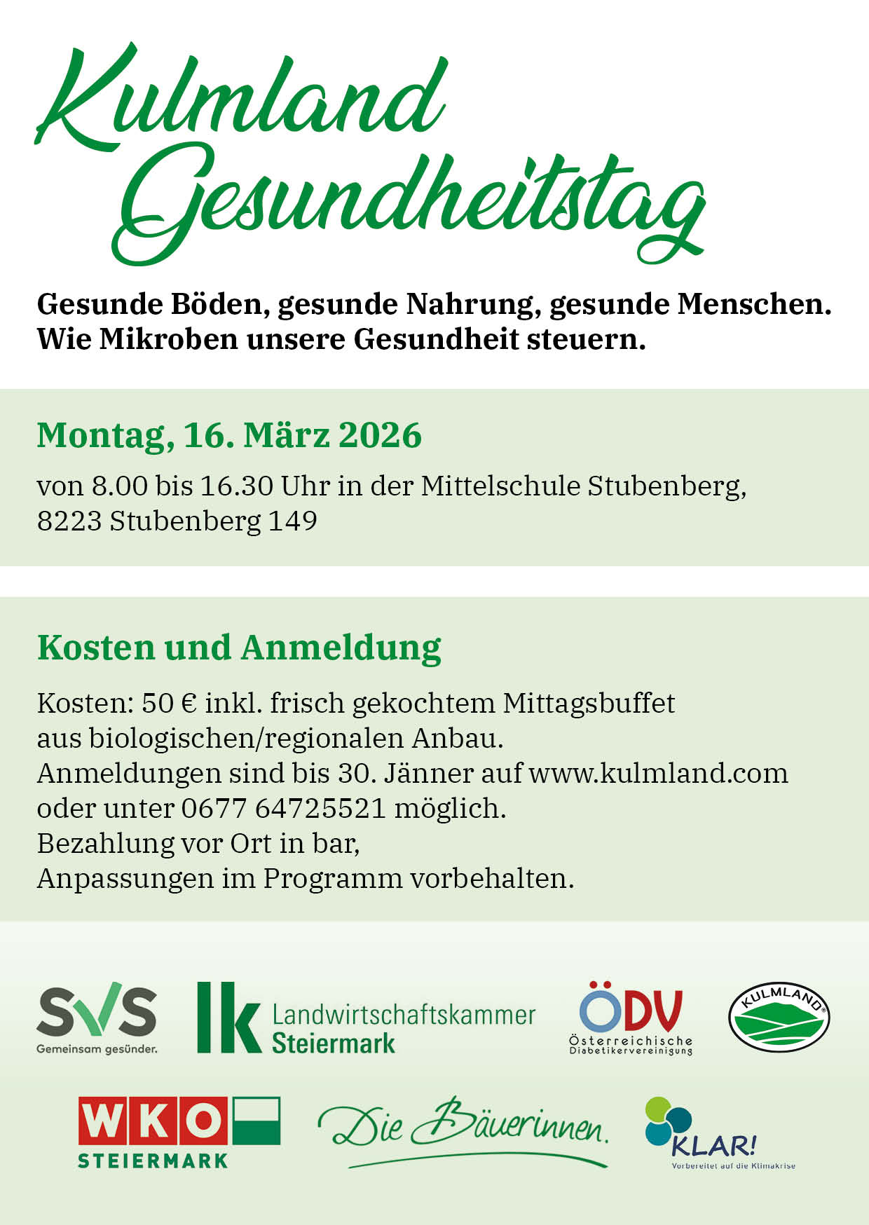 Am 16. März 2026 dreht sich beim Kulmland Gesundheitstag alles um gesunde Böden, gesunde Nahrung und gesunde Menschen.